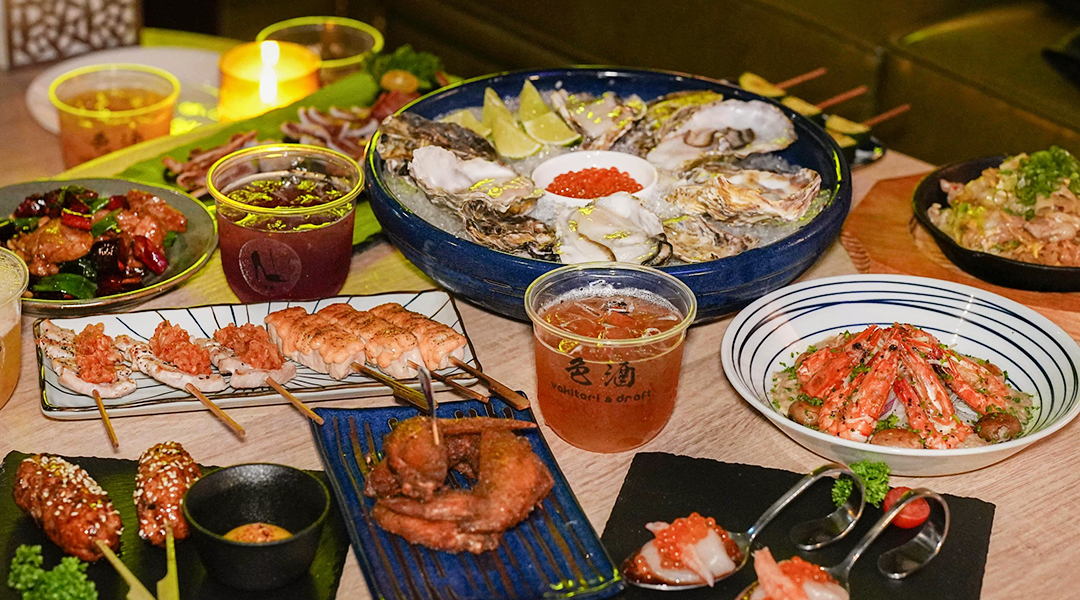 創作料理、台湾式熱炒(炒め物)、串焼き、鍋料理など多彩なメニューに加え、